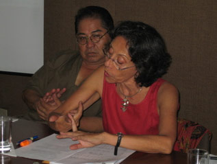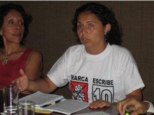 Susel Paredes followed. She began by affirming that she has been a socialist militant since she was 17 years old, first in the PUM (Unified Mariateguista Party) and now in the Socialist Party with Javier Diez Canseco. The Socialist Party chooses its candidates by internal democracy, overseen by the National Office of Electoral Processes (ONPE) and there are no “consensus lists.” She was proposed by lesbian and feminist groups, and placed 5th on the list of candidates to congress. She made public her sexual orientation as a lesbian as an act of honesty and to advance her policy agenda. There are 24 public policies for the inclusion of GLBT population that the Socialist Party wishes to advance in the next legislature.